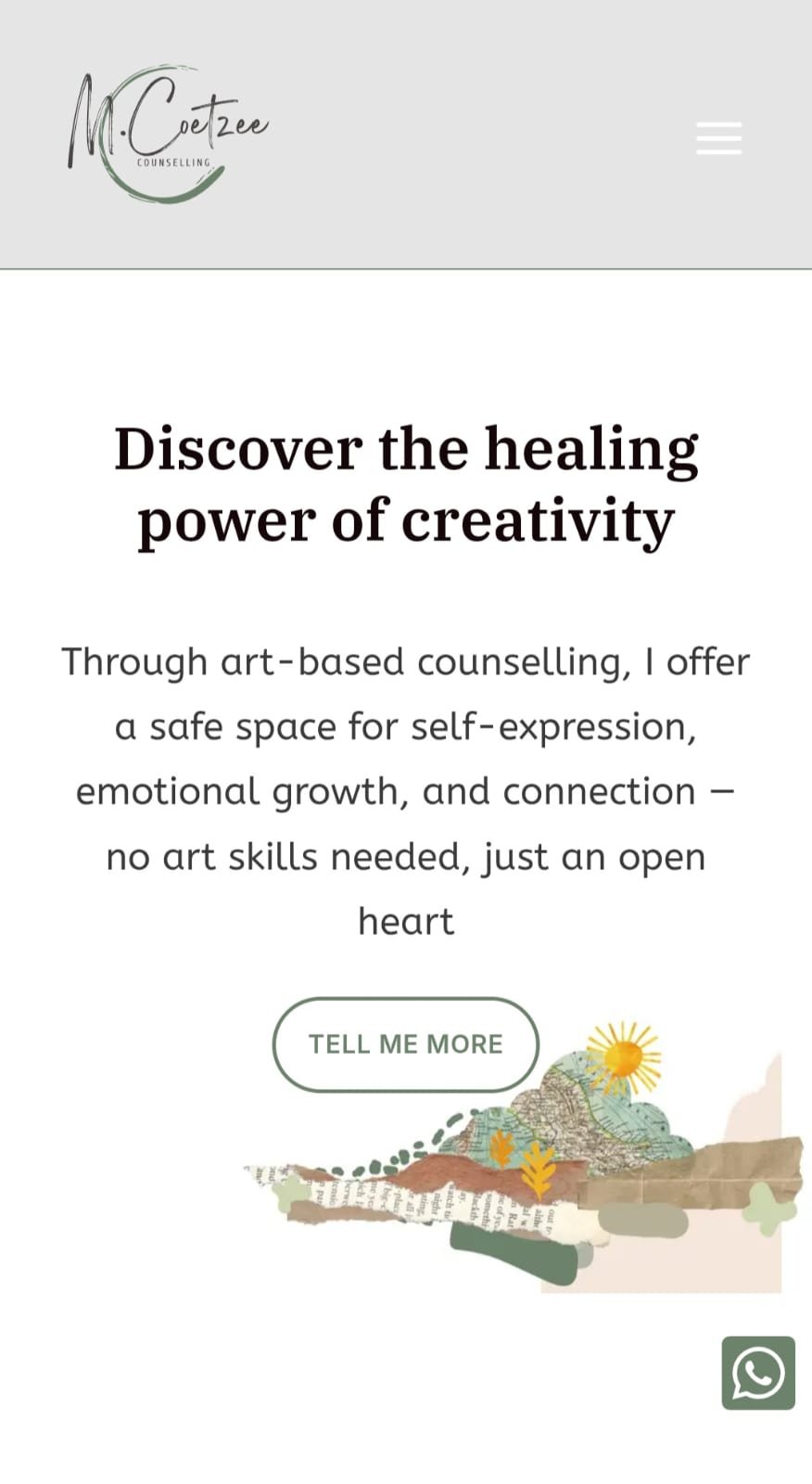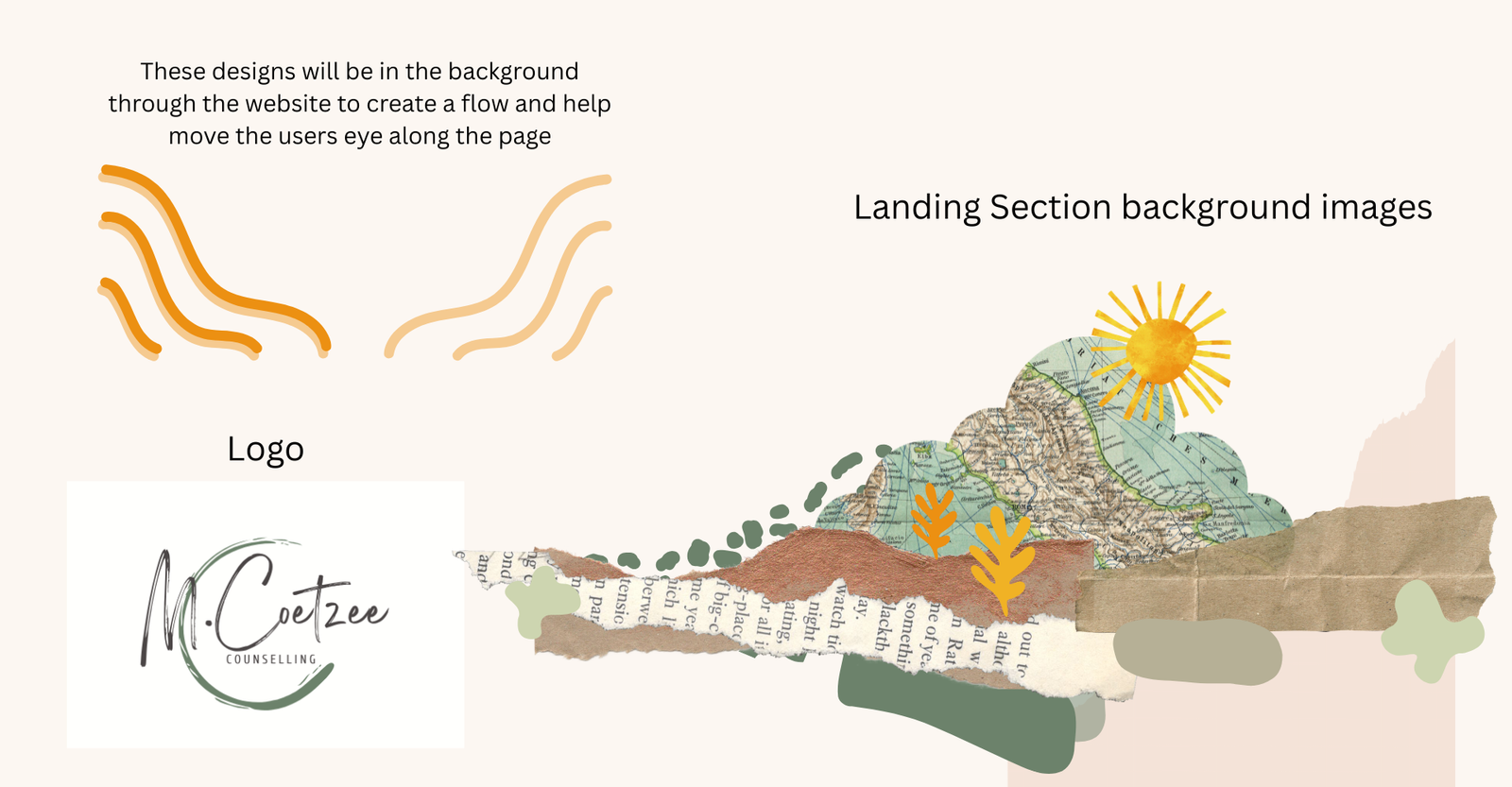 To give the landing page a more creative and expressive feel, I designed a custom collage-inspired image. This artwork added a unique, personal touch while reinforcing the artistic nature of the counselling practice. It also introduced subtle textures to the page, helping to break up clean sections with visual interest and warmth—without overwhelming the overall calming aesthetic.