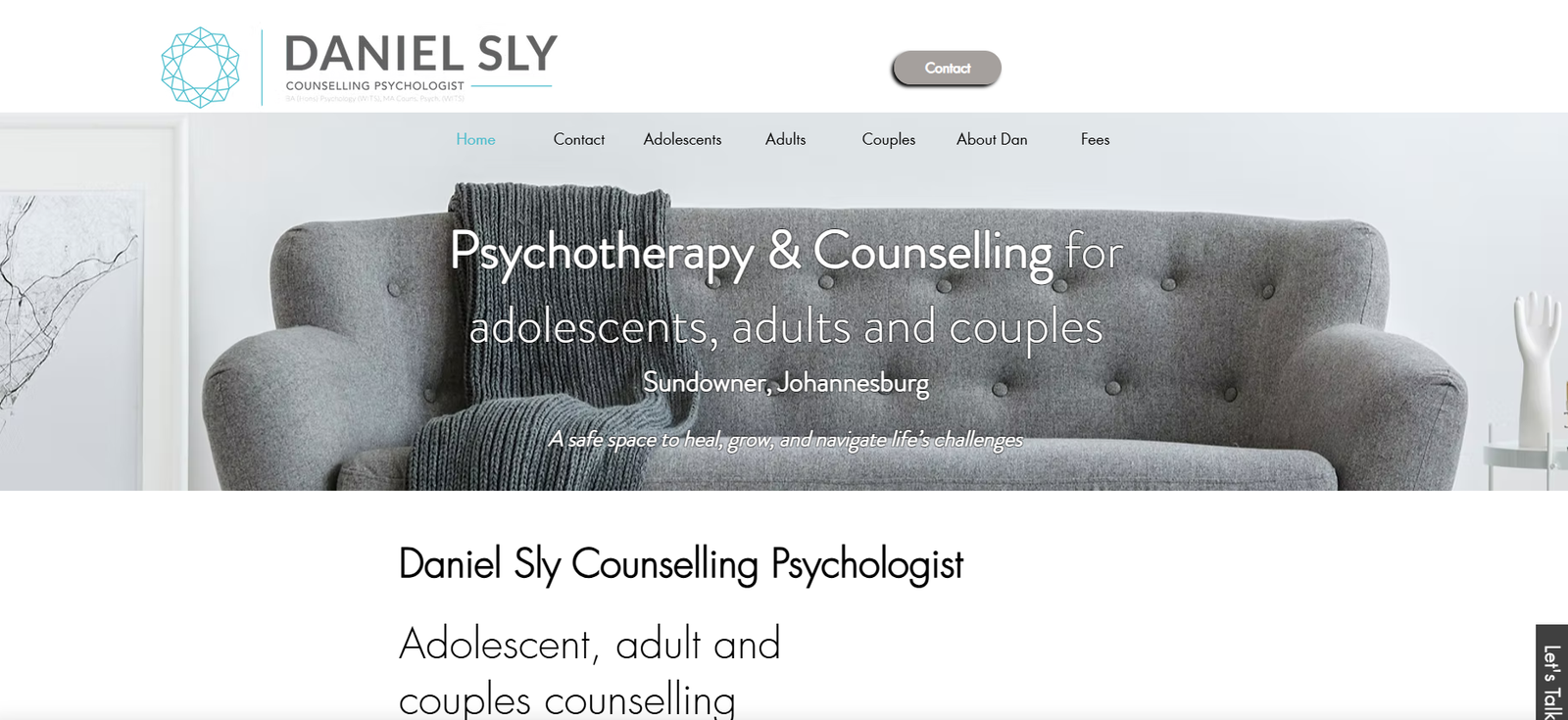 Since the site represents a therapeutic service, I made sure that the information architecture and content delivery felt calming rather than clinical. Language was kept warm and reassuring, while also being informative.