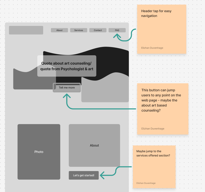 I prioritized essential user actions—like understanding what art-based counselling is, viewing services, and booking a session. These elements were made prominent using buttons, minimal scrolling, and mobile-friendly layouts to guide users toward their next step.